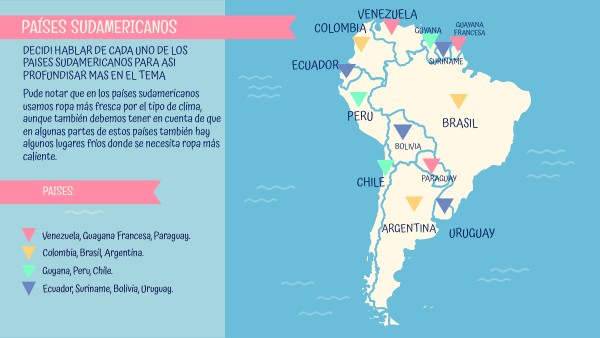 Pude notar que en los países sudamericanos usamos ropa más fresca por el tipo de clima, aunque también debemos tener en cuenta de que en algunas partes de estos países también hay algunos lugares fríos donde se necesita ropa más caliente.