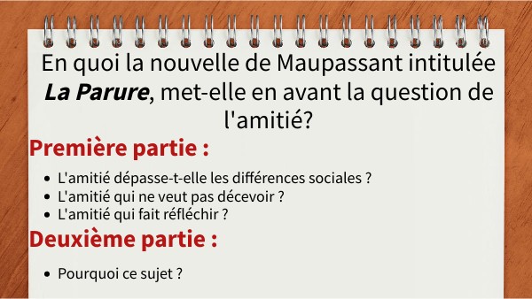 En quoi la nouvelle de Maupassant intitulée La Parure, met-elle en avant la question de l'amitié?