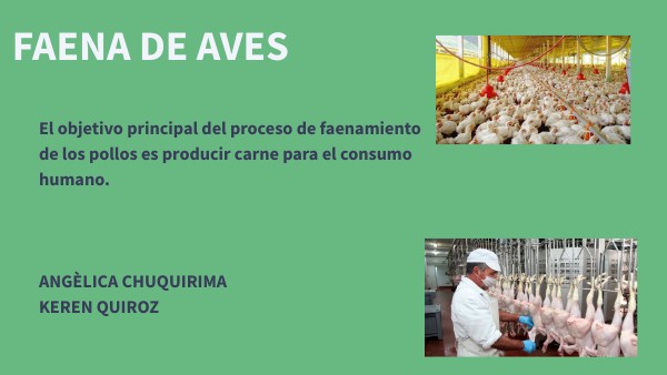 El objetivo principal del proceso de faenamiento de los pollos es producir carne para el consumo humano. ANGÈLICA CHUQUIRIMA KEREN QUIROZ