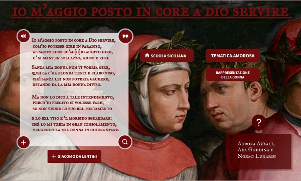 Io m’aggio posto in core a Dio servire, com’io potesse gire in paradiso, al santo loco ch’ag[g]io audito dire, u’ si manten sollazzo, gioco e riso.