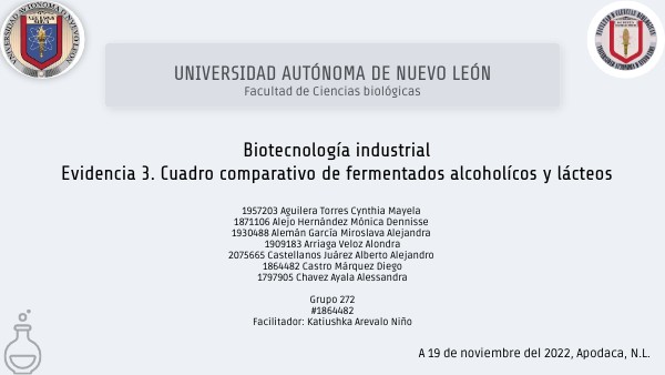 Biotecnología industrialEvidencia 3. Cuadro comparativo de fermentados alcoholícos y lácteos