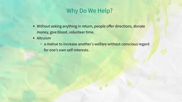 - Finally, learning about altruism can prepare people to perceive and respond to others’ needs.