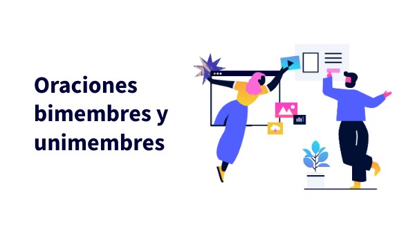 Las oraciones pueden ser BIMEMBRES O UNIMEMBRES. Las oraciones UNIMEMBRES son aquellas que tienen un solo miembro, es decir, no se pueden separar en sujeto y predicado. Son aquellas en las que no hay un verbo conjugado o el sujeto no es un sustantivo o pronombre. Ejemplo: ¡Cuidado con los peatones! ¡Papá! Niños y jóvenes. Anoche llovió.
