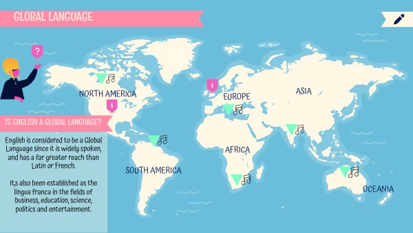 English is considered to be a Global Language since it is widely spoken, and has a far greater reach than Latin or French. It,s also been established as the lingua franca in the fields of business, education, science, politics and entertainment.