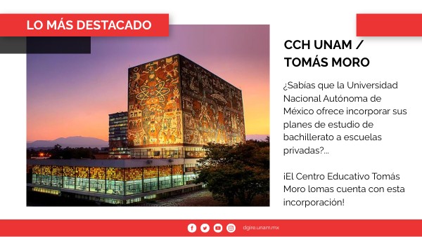 ¿Sabías que la Universidad Nacional Autónoma de México ofrece incorporar sus planes de estudio de bachillerato a escuelas privadas?... ¡El Centro Educativo Tomás Moro lomas cuenta con esta incorporación!
