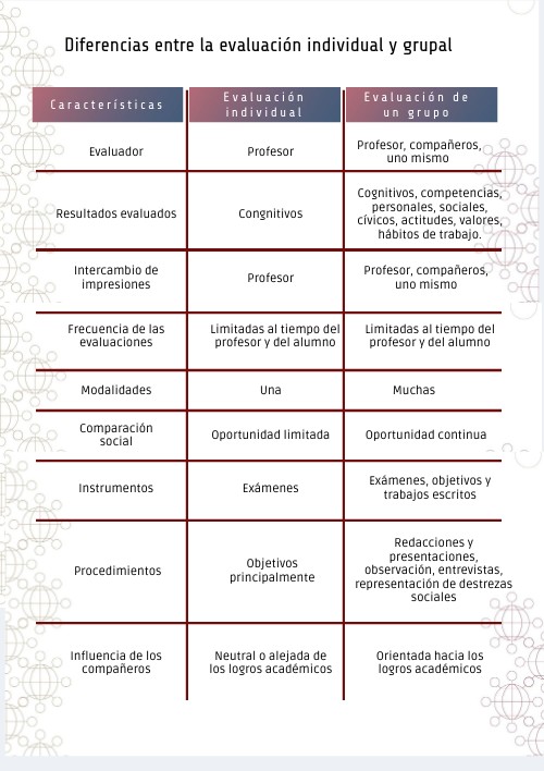 Diferencias entre la evaluación individual y grupal