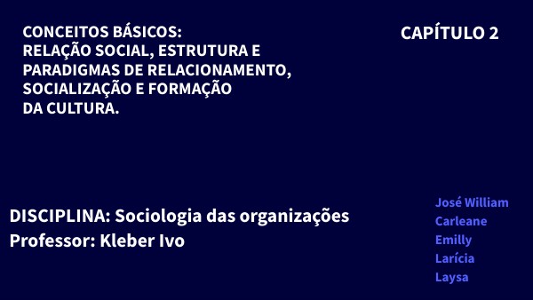 CONCEITOS BÁSICOS: RELAÇÃO SOCIAL, ESTRUTURA E PARADIGMAS DE RELACIONAMENTO, SOCIALIZAÇÃO E FORMAÇÃO DA CULTURA.