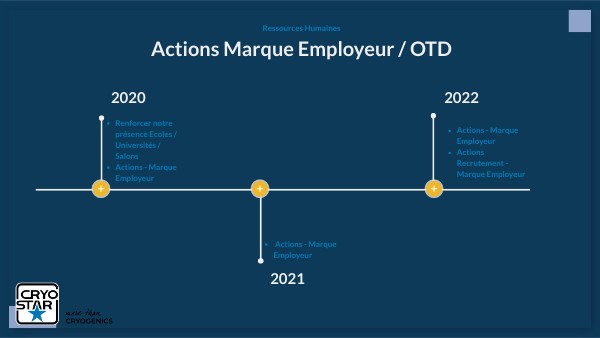 Service Comm' : Définir notre marque employeur : manière dont Cryostar est perçu à l'extérieur de l'entreprise - promesses, raccourci d'attributs rationnels et émotionnels, représentation des valeurs associées à Cryostar.