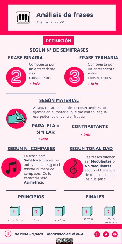 Infografía con material relativo al análisis de frases para alumnado de Análisis musical de enseñanzas Profesionales de música.