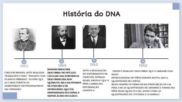 Johann Miescher descobriu no núcleo celular uma substância desconhecida dos químicos, rica em átomos de fósforo e de nitrogênio, que foi denominada nucleína, e depois ácido nucléico.