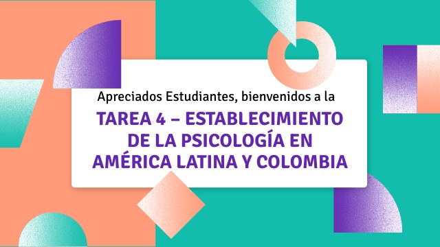 En el entorno de Aprendizaje debe: Revisar syllabus del curso en el Entorno de Aprendizaje del curso para comprender en profundidad la estructura del mismo y las responsabilidades de aprendizaje derivadas Leer con detenimiento la guía y rúbrica de actividades de la Tarea 4 – Establecimiento de la Psicología en América Latina y Colombia. Participar de manera oportuna en los tiempos establecidos en el interior del foro de la Tarea 4 – Establecimiento de la Psicología en América Latina y Colombia, para la construcción del trabajo.