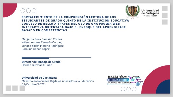Fortalecer la comprensión lectora de los estudiantes de quinto grado de la Institución Educativa Concejo de Bello a través del uso de una página Web interactiva orientada bajo el enfoque del aprendizaje basado en competencias.