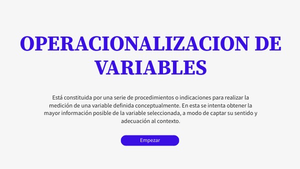 Está constituida por una serie de procedimientos o indicaciones para realizar la medición de una variable definida conceptualmente. En esta se intenta obtener la mayor información posible de la variable seleccionada, a modo de captar su sentido y adecuación al contexto.