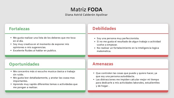 - Soy muy creativa en el momento de exponer mis opiniones o mis sugerencias.