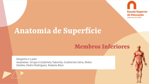 Desporto e Lazer Anatomia- Grupo 6 (Gabriela Taborda, Guilherme Silva, Pedro Simões, Pedro Rodrigues, Rafaela Reis)