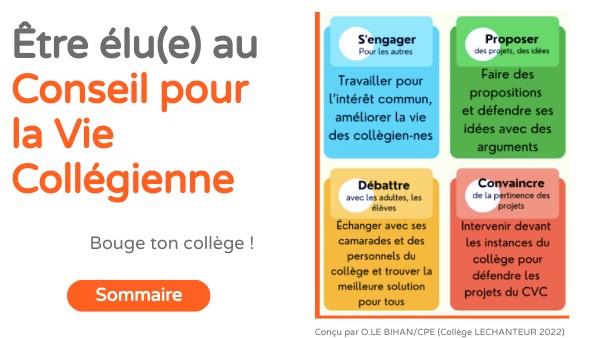 Le CVC est un conseil d’élèves conçu comme un lieu de dialogue et d’échanges entre les membres élus (les élèves) et les membres volontaires de la communauté éducative (personnels de l’établissement et parents). Au CVC, les élèves proposent, les adultes conseillent et accompagnent. L’une des clés de la réussite de cette instance repose donc sur la confiance donnée aux élèves.