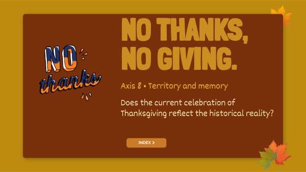 ------------- the myth of Thanksgiving, the reality seems to hide a crude reality. The Native Americans, -------------- being massacred, accepted to help the English settlers. -------------- the historical events tend to condemn the celebration of Thanksgiving, today, the Americans celebrate this day -------------- for the Native Americans it is a mourning day. -------------- these differences, we should celebrate togetherness on this day and make amends to the Native Americans.
