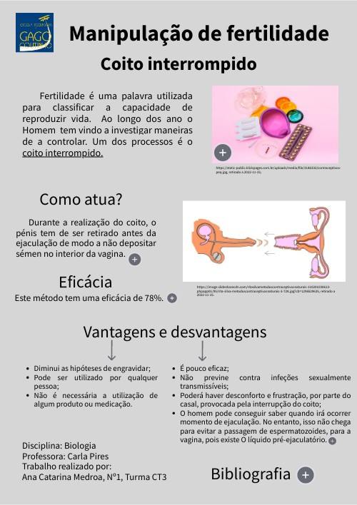 Fertilidade é uma palavra utilizada para classificar a capacidade de reproduzir vida. Ao longo dos ano o Homem tem vindo a investigar maneiras de a controlar. Um dos processos é o coito interrompido.