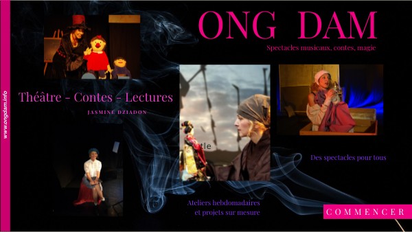 Au cœur de la vallée de l’Hérault, Ong Dam crée du théâtre, répond aux demandes locales, tisse des synergies avec les artistes de la région et partage ce travail ici et ailleurs… Ong Dam propose ainsi du spectacle vivant autour de contes, poésie, histoire, musique, magie. Sous le pseudonyme de ONG DAM se trouve Jasmine Dziadon, comédienne, autrice et metteuse en scène.