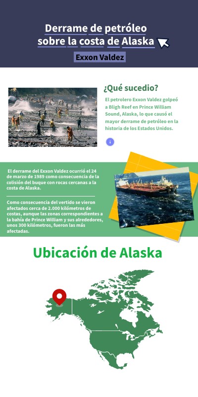 El derrame del Exxon Valdez ocurrió el 24 de marzo de 1989 como consecuencia de la colisión del buque con rocas cercanas a la costa de Alaska.