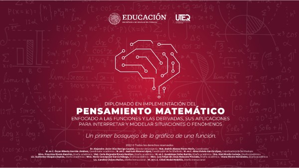 Dr. Alejandro Javier Díaz Barriga Casales, Director del proyecto / Mat. Andrés Alonso Flores Marín, Coordinador M. en C. Óscar Alberto Garrido Jiménez, Coordinador académico / M. en C. José Luis Álvarez López, Coordinador de facilitadores / M. en C. Alma Violeta García López, Coordinadora de facilitadores Mtro. Francisco Rivera Ramírez, Diseño académico / Mat. Carla Alejandra Rivera Ramírez, Diseño académico / M. en C. Guadalupe Yañez Barrón, Diseño académico / Dra. Itzel Ricaño Cornejo, Diseño académico Lic. Guillermo Vázquez Zepeda, Diseño académico / Mtra. María Concepción García Rábago, Diseño académico / Mtro. Luis Felipe de Jesús Malacara Preciado, Diseño académico / Diana Rivera Hernández, Diseño académico Lic. Carolina Chávez Muñoz, Diseño instruccional / M. en C.C. Citlali Medal Medellín, Diseño instruccional