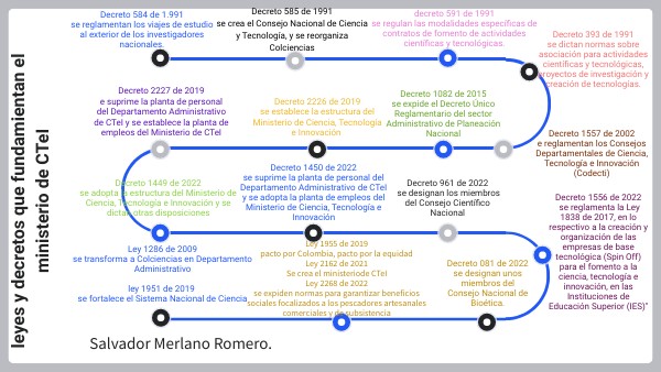 Ley 1955 de 2019 pacto por Colombia, pacto por la equidad Ley 2162 de 2021 Se crea el ministeriode CTeI Ley 2268 de 2022 se expiden normas para garantizar beneficios sociales focalizados a los pescadores artesanales comerciales y de subsistencia