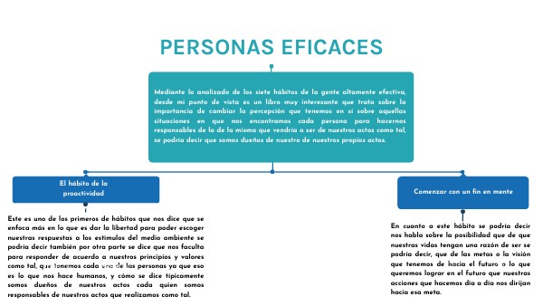 Mediante lo analizado de los siete hábitos de la gente altamente efectiva, desde mi punto de vista es un libro muy interesante que trata sobre la importancia de cambiar la percepción que tenemos en sí sobre aquellas situaciones en que nos encontramos cada persona para hacernos responsables de la de la misma que vendría a ser de nuestros actos como tal, se podría decir que somos dueños de nuestro de nuestros propios actos.
