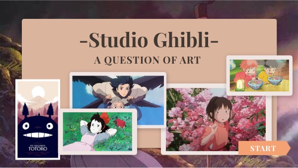 Studio Ghibli (株式会社スタジオジブリ) is a Japanease animation Studio that was fouded by Hayao Miyazaki Isao Takahata Suzuki and it most reconizable symbol is Totoro a character from the movie "My neighbor Totoro"
