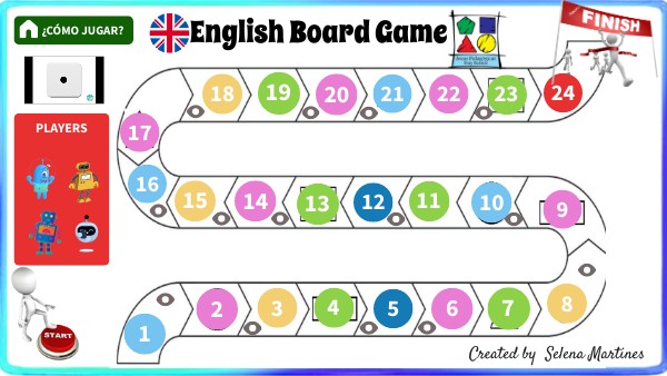 Juego de mesa para estudiar ingles, sobre "school, music y healthy habits".