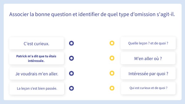 Associer la bonne question et identifier de quel type d'omission s'agit-il.