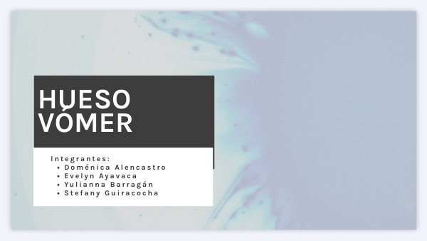 lámina ósea vertical que divide las dos fosas nasales extendida entre la cara inferior del esfenoides y la cresta nasal. Su forma es cuadrangular y muy delgado. este hueso presenta dos caras laterales y cuaatro bordes