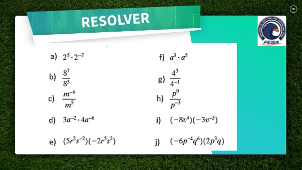 - Resolver los siguientes ejercicios , aplicando las propiedades de las potencias