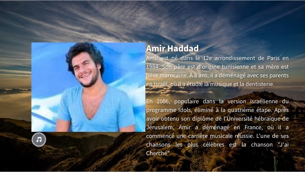 Amir est né dans le 12e arrondissement de Paris en 1984. Son père est d'origine tunisienne et sa mère est juive marocaine. À 8 ans, il a déménagé avec ses parents en Israël, où il a étudié la musique et la dentisterie. En 2006, populaire dans la version israélienne du programme Idols, éliminé à la quatrième étape. Après avoir obtenu son diplôme de l'Université hébraïque de Jérusalem, Amir a déménagé en France, où il a commencé une carrière musicale réussie. L'une de ses chansons les plus célèbres est la chanson "J'ai Cherché".