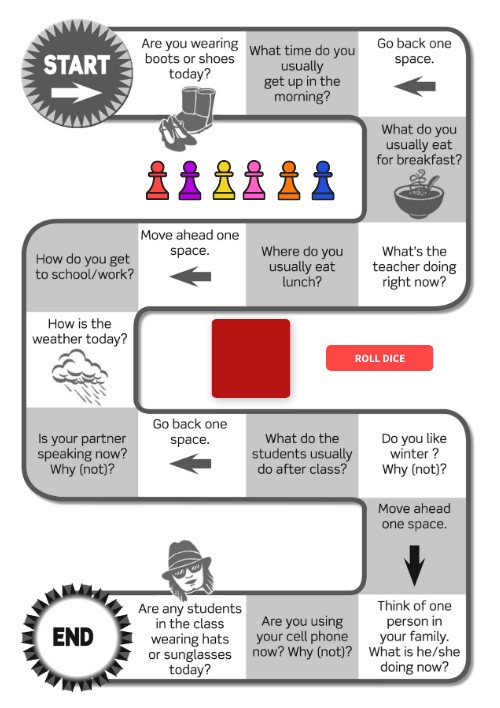 Present simple x present continuous board game