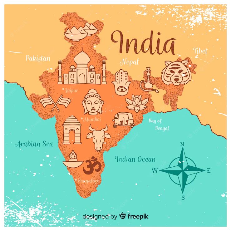 Indian Ocean on the south, the Arabian Sea on the southwest, the Bay of Bengal on the southeast Pakistan,China, Nepal,Bhutan,Bangladesh and Myanmar