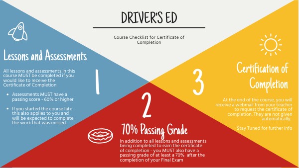 All lessons and assessments in this course MUST be completed if you would like to receive the Certificate of Completion