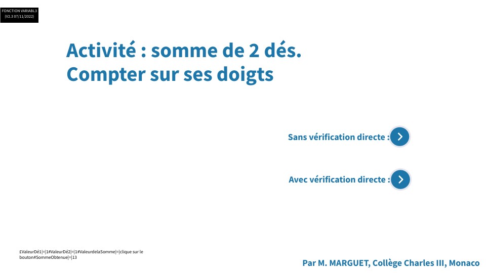 £ValeurDé1|=|1#ValeurDé2|=|1#ValeurdelaSomme|=|clique sur le bouton#SommeObtenue|=|13