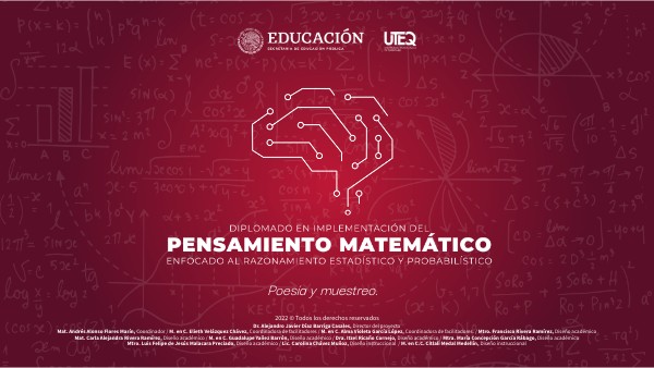 Dr. Alejandro Javier Díaz Barriga Casales, Director del proyecto Mat. Andrés Alonso Flores Marín, Coordinador / M. en C. Elieth Velázquez Chávez, Coordinadora de facilitadores / M. en C. Alma Violeta García López, Coordinadora de facilitadores. / Mtro. Francisco Rivera Ramírez, Diseño académico Mat. Carla Alejandra Rivera Ramírez, Diseño académico / M. en C. Guadalupe Yañez Barrón, Diseño académico / Dra. Itzel Ricaño Cornejo, Diseño académico / Mtra. María Concepción García Rábago, Diseño académico Mtro. Luis Felipe de Jesús Malacara Preciado, Diseño académico / Lic. Carolina Chávez Muñoz, Diseño instruccional / M. en C.C. Citlali Medal Medellín, Diseño instruccional