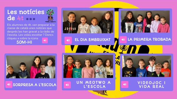 Els alumnes de 4t, van preparar a la classe de català unes notícies que després les han gravat a la ràdio de l'escola. Les voleu escoltar ? Doncs cliqueu a sobre la icona