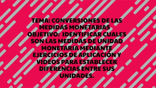 TEma: CONVERSIONES DE LAS MEDIDAS MONETARIAS objetivo: IDENTIFICAR CUALES SON LAS MEDIDAS DE UNIDAD MONETARIA MEDIANTE EJERCICIOS DE APLICACIÓN Y VIDEOS PARA ESTABLECER DIFERENCIAS ENTRE SUS UNIDADES.