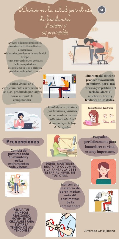 A veces, mientras realizamosnuestras actividaes diarias académicas o laborales, perdemos la noción del tiempo y nos convertimos en esclavos de la computadora. estamos expuestos a algunos problemas de salud, como: