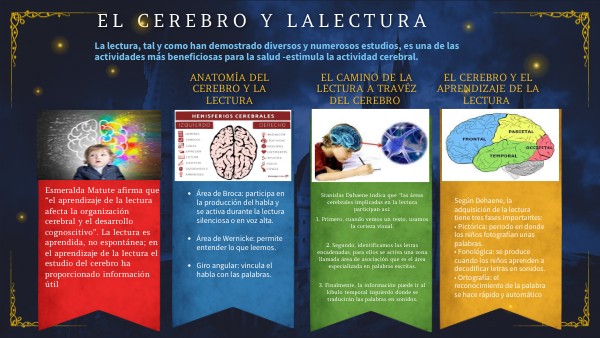 Esmeralda Matute afirma que “el aprendizaje de la lectura afecta la organización cerebral y el desarrollo cognoscitivo”. La lectura es aprendida, no espontánea; en el aprendizaje de la lectura el estudio del cerebro ha proporcionado información útil