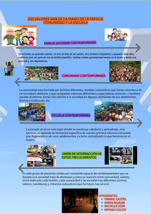 En este grupo de personas unidas por constante espacio de contempooraneo que va llevada una sociedad trata de disimular y como su reacción entre comunidad, valores, entre todo esto cada familia, cada comunidad y las escuelas hay diferentes normas, valores, tracidiones y critrerios esducativos que ha futuro nos servirá.