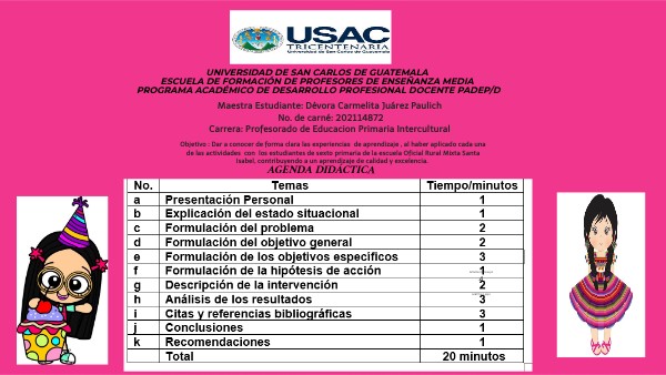 Maestra Estudiante: Dévora Carmelita Juárez Paulich No. de carné: 202114872 Carrera: Profesorado de Educacion Primaria Intercultural