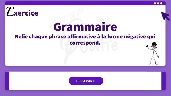 Relie chaque phrase affirmative à la forme négative qui correspond.