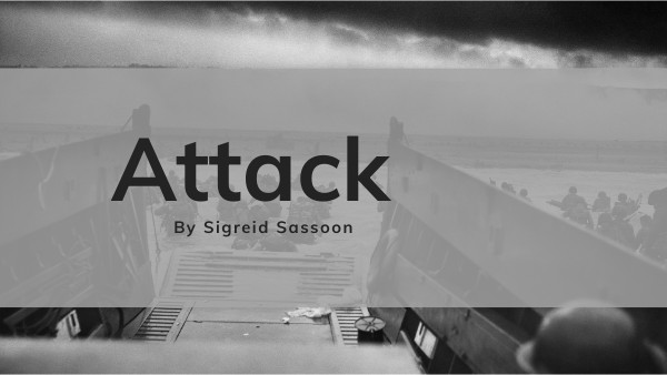Attack is a World War 1 poem written by Siegfried Sassoon. It deaply reflects on the reality of war. The poem roughly takes place in the space of five minutes in the moments before the push into no mans land.