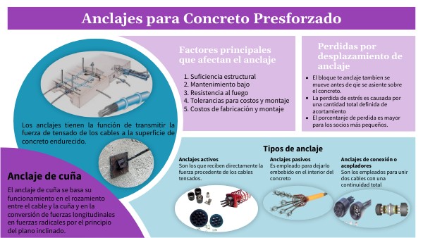 Los anclajes tienen la función de transmitir la fuerza de tensado de los cables a la superficie de concreto endurecido.