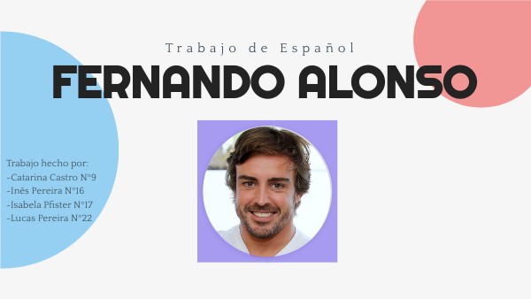 Fernando Alonso Diaz, nasció en Oviedo no día 29 de julio de 1981, tiene 41 años. Es un piloto bicampeón dél Mundo de Fórmula 1. Sus padres son José Luis Alonso y Ana Maria Diaz Martínez. Tiene una hermana, Lorena Alonso Diaz y es casado con Linda Morselli.