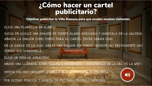Objetivo: publicitar la Villa Romana para que acudan muchos visitantes.