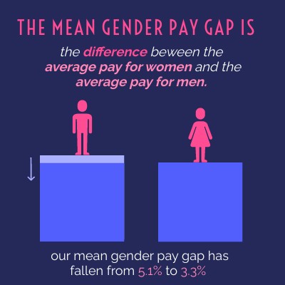 our mean gender pay gap has fallen from 5.1% to 3.3%